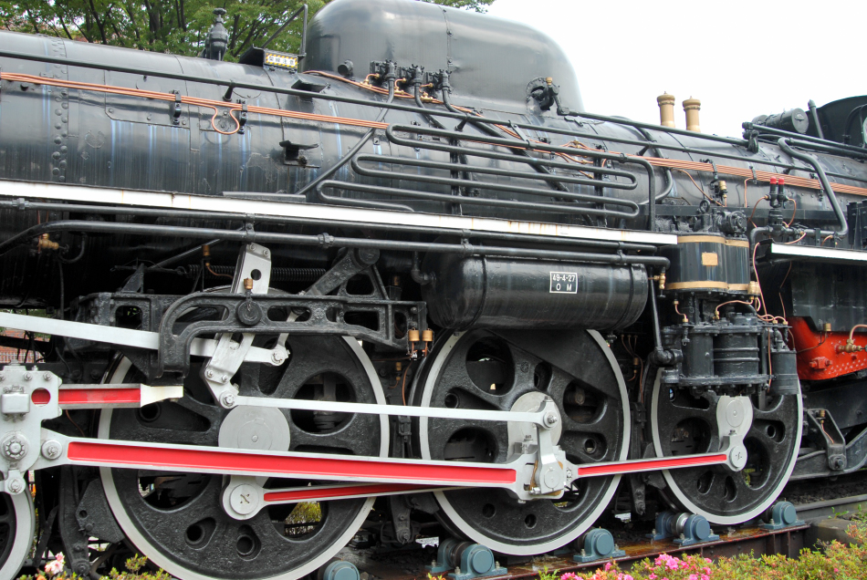 公式側,エアタンクには49‐4‐27 OMの表記があります。第2動輪,第3動輪,コンプレッサ周り。火室には朱色が塗られています。 (2024/09/10追加) |