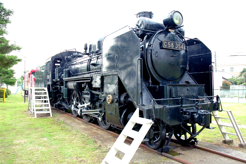 ED91 11と同じ廃線跡の児童遊園に保存されたC58 354。1944年1月15日に川崎車輌兵庫工場で落成し,王寺機関区に新製配置されました。和歌山区,奈良区,竜華区,会津若松運転区と移り,1974年廃車,1975年8月に仙台鉄道管理局から利府町に無償貸与され,森脇児童遊園で保存されていました。残念ながらこのあと2022年に解体されたようです。 (2024/09/01追加) |