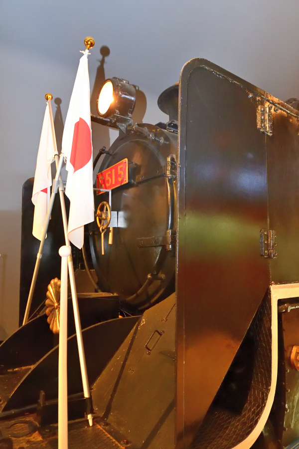 | No.D850_221112-254 2022年11月12日 C51 5 鉄道博物館 本機はお召列車の牽引経歴はないようですが,鉄道150年ということもあってか,国旗と菊の紋章を付けています。 (2022/11/14追加) |
