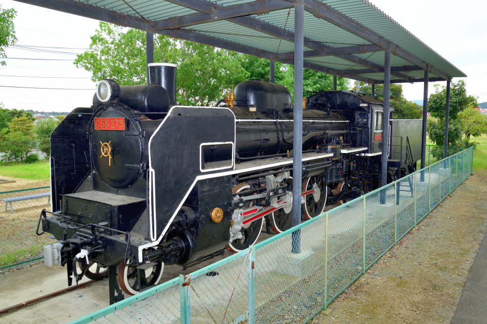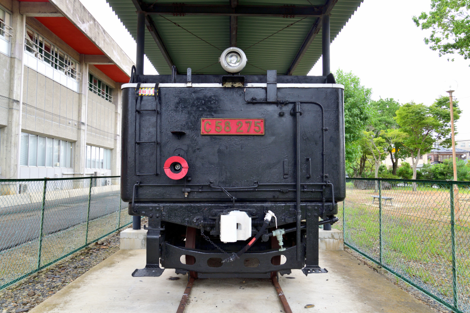 | No.D850_240914-008 2024年9月14日 C58 275 笠間市 石井児童公園 正面。赤ナンバーが付けられています。保存開始当初には屋根は無く2000年代になってから付けられたようです。 (2024/09/18追加) |