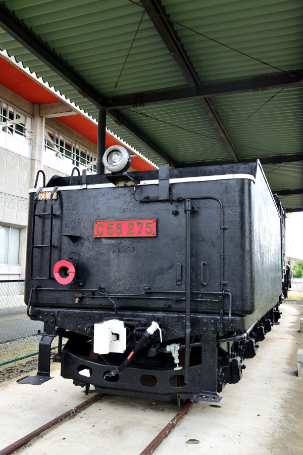 | No.D850_240914-039 2024年9月14日 C58 275 笠間市 石井児童公園 テンダー妻面。後灯はシールドビーム,後部標識灯は向かって左側に1つで円板が付いています。 (2024/09/18追加) |