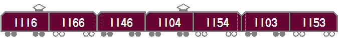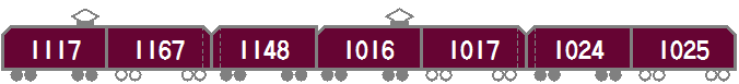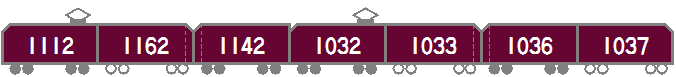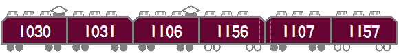 今津 1030‐1031+1106‐1156‐1107‐1157 宝塚 神戸線を走っていた1030Fの7連が冷改の上,6連化され今津線で活躍していました。特徴のあった屋根のルーバーは失われてしまい,人違いのように見えました。 (2024/02/19ワイド化) |