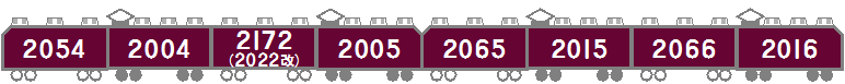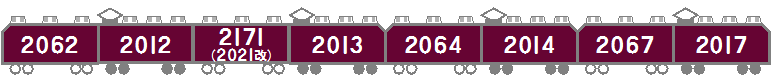 8両化にあたり2012と2013の間に2171を挿入,2171は2021を電装解除した改番車 |
