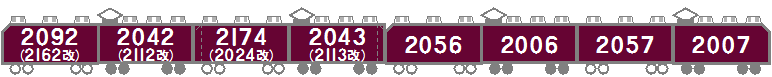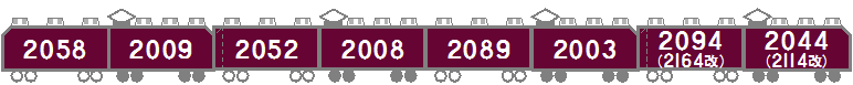 冷改時に2060Fの編成を前後入れ替え,2010と2011の間に2091を組込み,2091はTc→Tに改造済 |