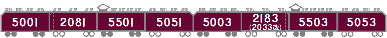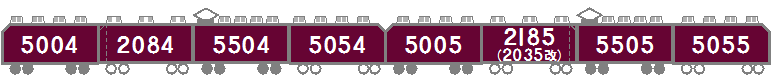 西宮北口 5008‐5508‐5558(5058)‐5529(5009)‐5509‐5059 宝塚 武庫川を渡る5008F (2025/08/23追加) |