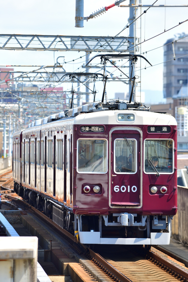 | No.D850_250819‐011 2025年8月19日 6010F 6010他 3両 普通 今津行 今津南線 阪神国道→今津 今津 6010‐6650‐6110 西宮北口 3両編成に短縮化され今津南線や甲陽線で活躍中の6010F (2025/08/23追加) |