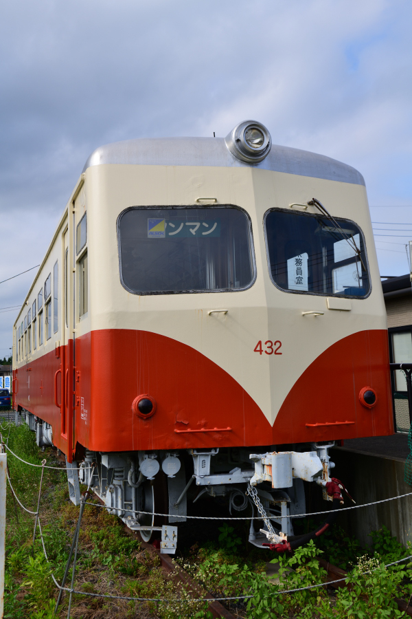 | No.D850_220806-107 2022年8月6日 キハ432 小川南病院 前位側の正面。前照灯はシールドビーム化されています。カプラーは密着自動連結器。 |