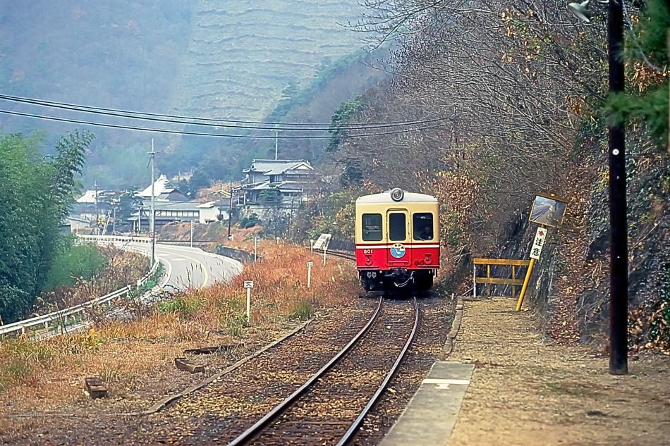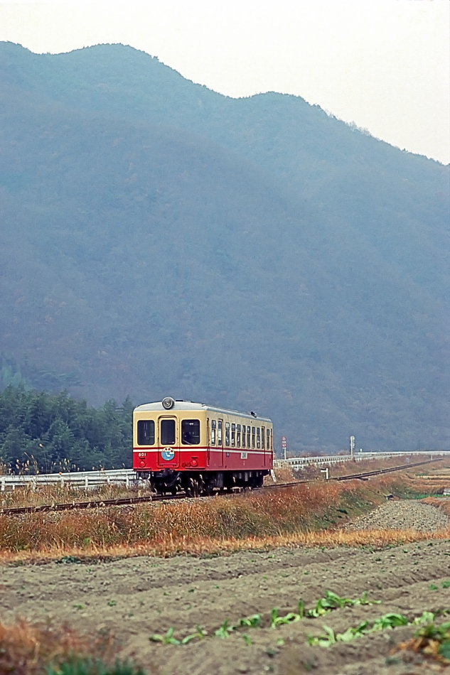 | No.140‐10 1986年12月14日 キハ801 片上鉄道 苦木→杖谷 山間部を走るキハ801。 (2022/07/24ワイド化) |