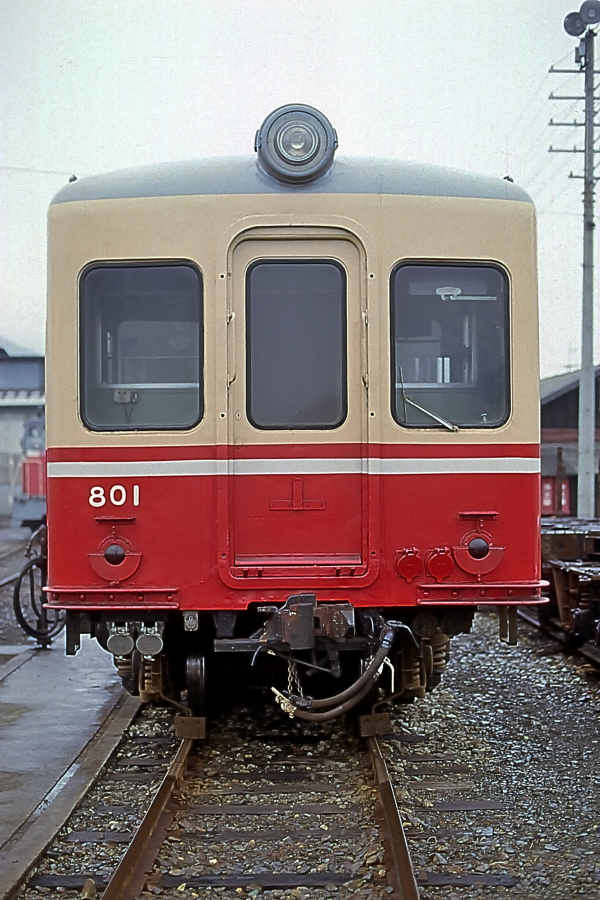 | No.140‐26 1986年12月14日 キハ801 片上鉄道 片上車庫 <鉄研車庫見学会> 正面から。キハ20に比べて正面窓が大きく電車のような印象があります。 (2022/07/24ワイド化) |