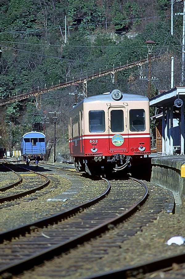 | No.116‐21 1986年1月19日 キハ802 27D 片上鉄道 柵原 柵原に到着したキハ802。後ろにはホハフ2002がいます。 (2022/07/24ワイド化) |