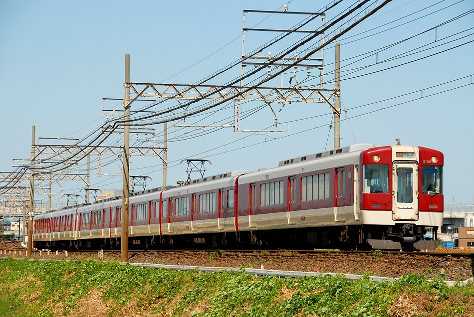 | No.D200_090830‐12 2009年8月30日 5200系 VX07編成他 ク5157他 6両 急行 松阪行 名古屋線 阿倉川→川原町 |