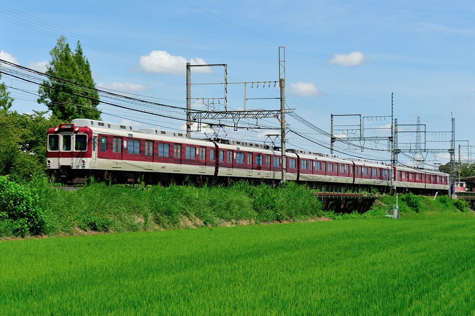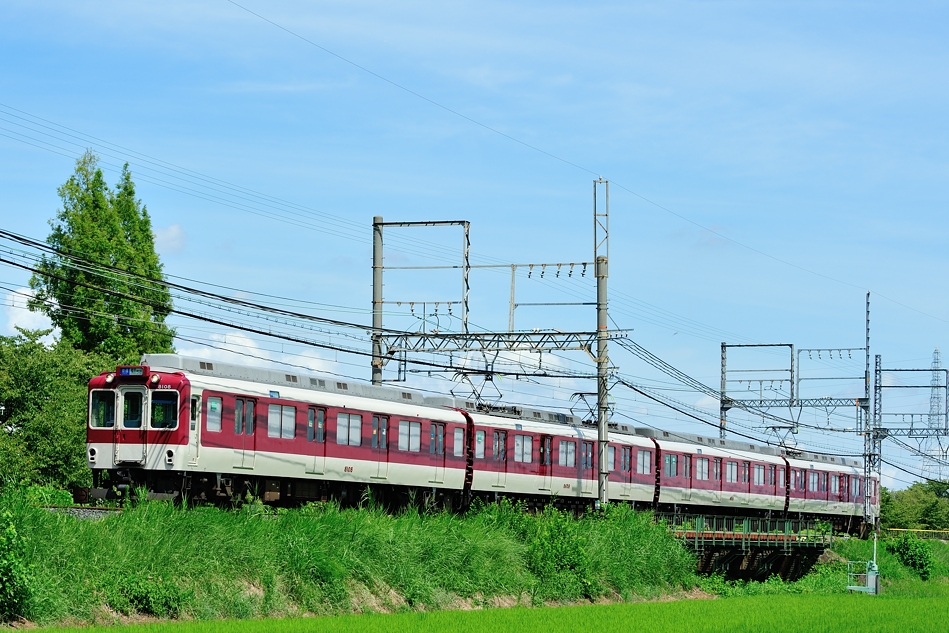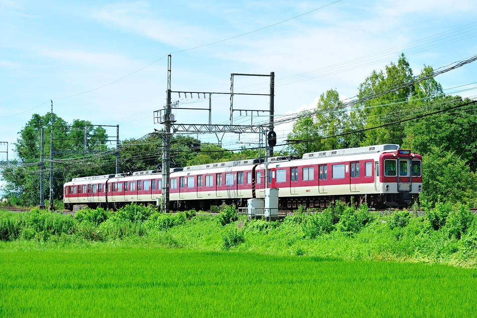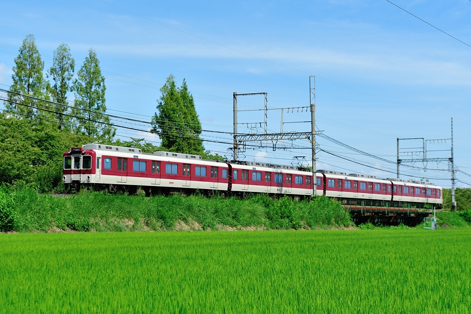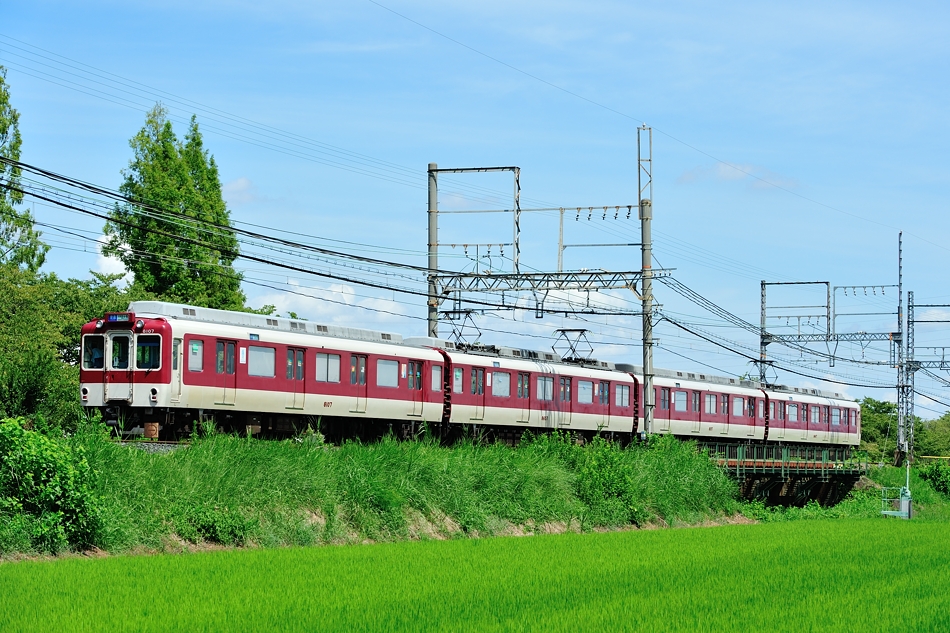 大和西大寺 モ8607‐サ8157‐モ8657‐ク8107 橿原神宮前 8600系X57編成による普通西大寺行き。緑の中を走る列車を撮るのは気持ちいい。 (2018/08/19追加) |