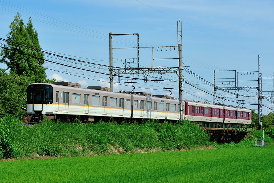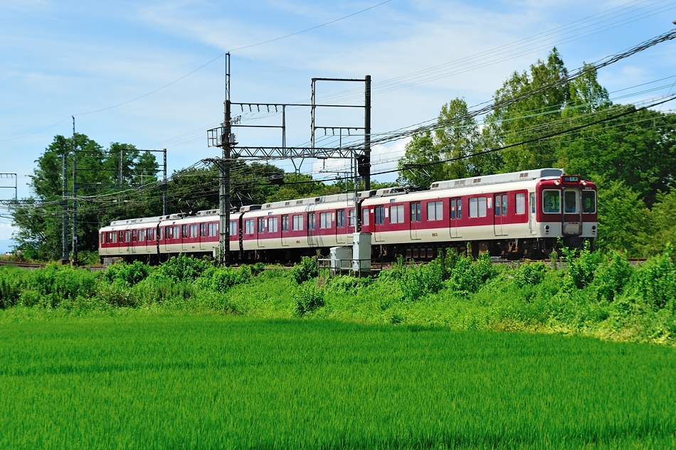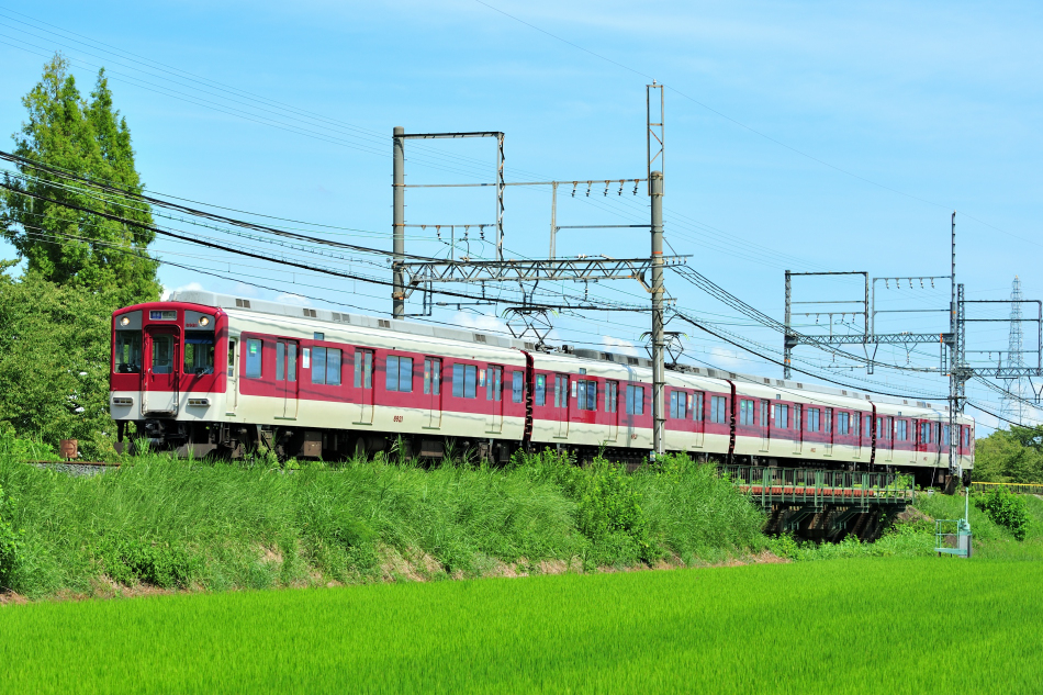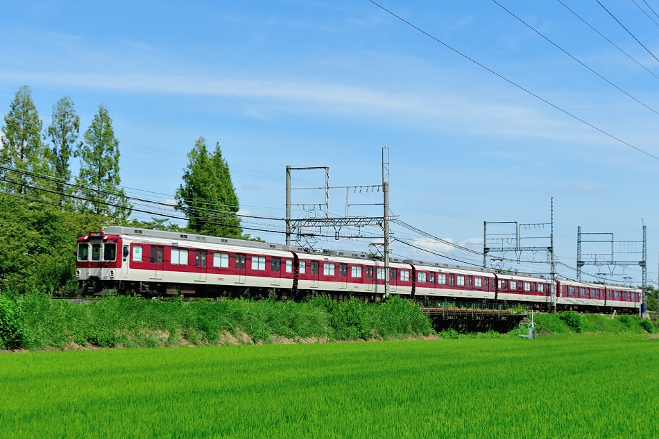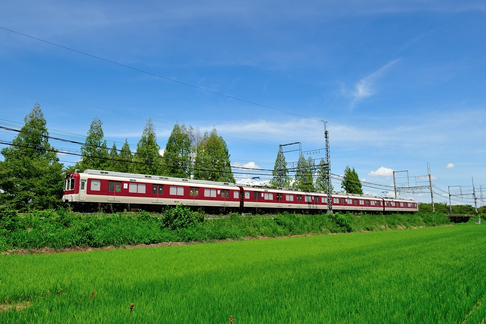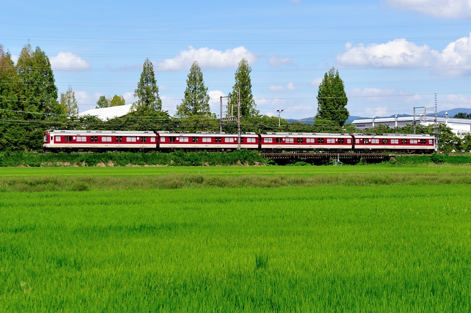 大和西大寺 モ8607‐サ8157‐モ8657‐ク8107 橿原神宮前 8600系X57編成による普通西大寺行き。緑の中を走る列車を撮るのは気持ちいい。 (2018/08/19追加) |