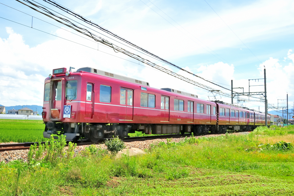 | No.D700_180814‐373 2018年8月14日 8400系 B14編成 モ8414他 3両 普通 西田原本行 田原本線 黒田→西田原本 |