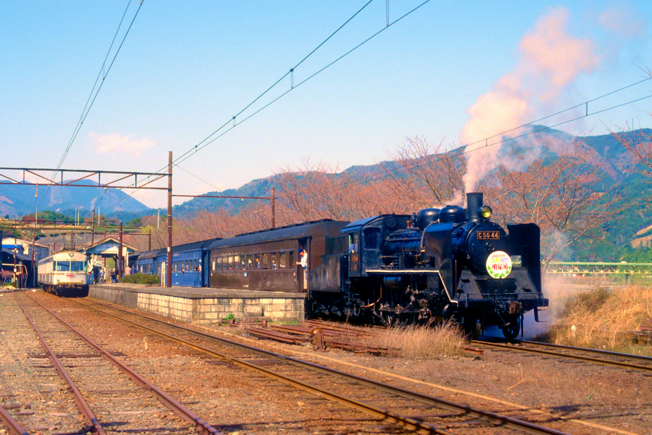 | No.47-32 1984年4月8日 C56 44+旧型客車3両 急行 ラーメン紀行明星号 金谷行 大井川本線 家山 |