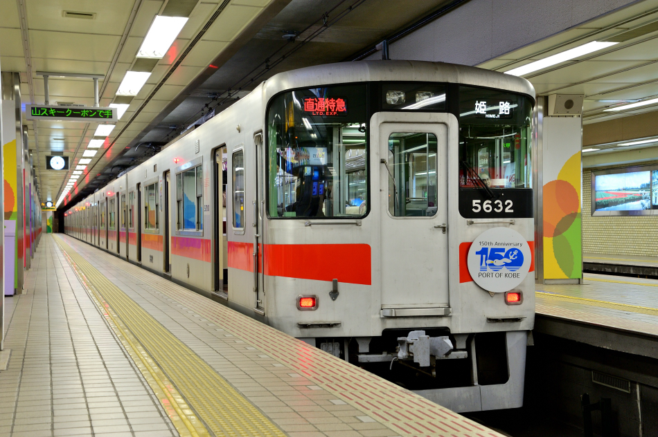 梅田 5632‐5232‐5233‐5531‐5251‐5633 姫路 神戸開港150周年記念ヘッドマークを付けた5632F。 (2024/04/19シャドー調整) |