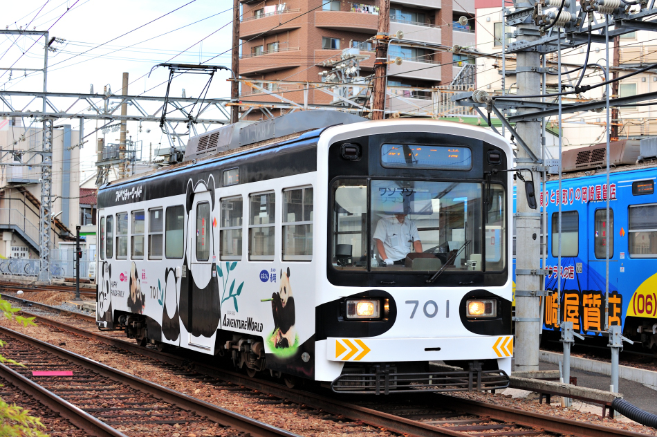 | No.D700_180814-471 2018年8月14日 モ701形 701号 恵美須町行 阪堺線 我孫子道 パンダさん柄の701号 |
