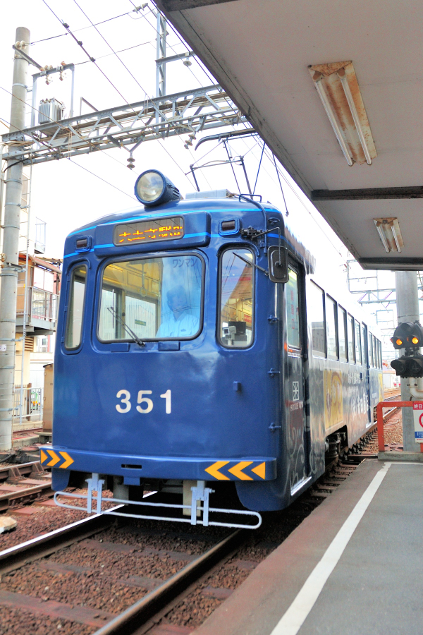 3車体連接固定編成,阪堺電軌としては初の超低床型車両となった1001形。堺市と国の補助により3編成が導入され[堺トラム]と名付けられています。また1001号は[茶ちゃ],1002号は[紫おん]と呼称が定められており,2015年に登場した写真の1003号は[青らん]となっています。 | ||||||||||||||||||||||||||||||||||||