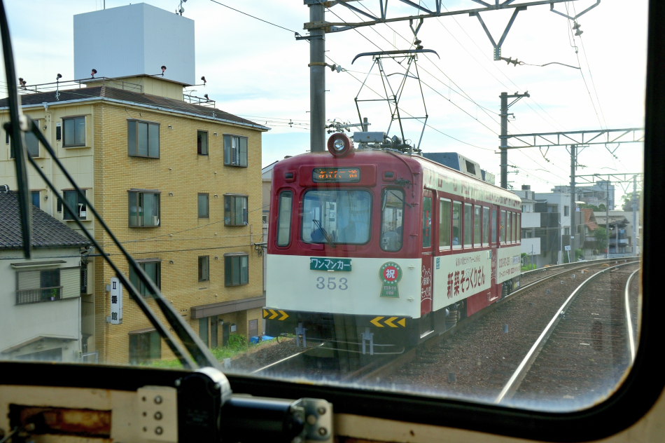 奥の我孫子道車庫から出庫してきた351号。 | ||||||||||||||||||||||||||||||||||||