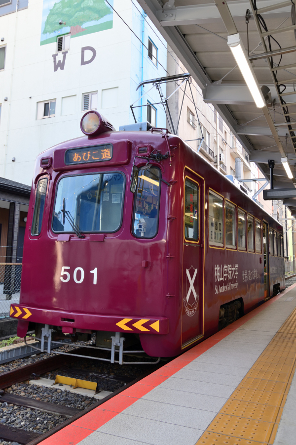 我孫子道到着後転線中の701号。アドベンンチャーワールドのラッピング電車となっています。 | ||||||||||||||||||||||||||||||||||||
