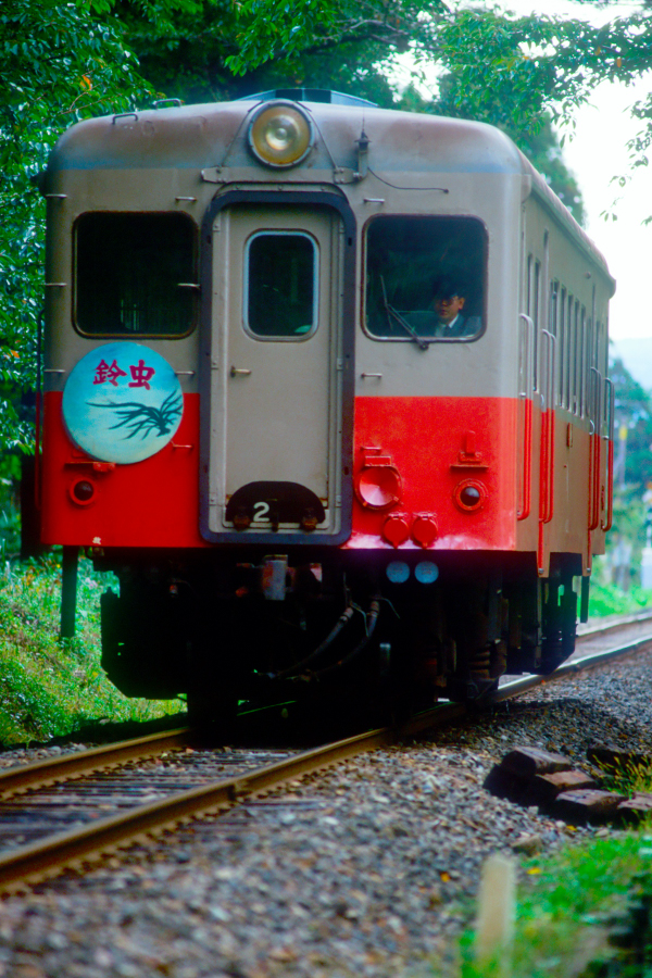 | No.315‐09 1993年10月11日 キハ24022 津軽鉄道 芦野公園←金木 300mmで正面がちに撮影したキハ24022の表情。車内にスズムシの虫かごを置いた鈴虫列車。 |