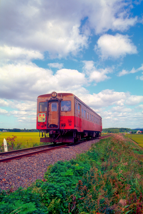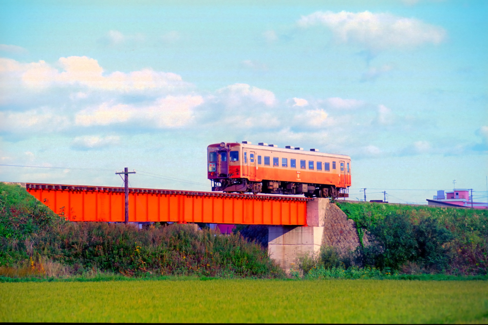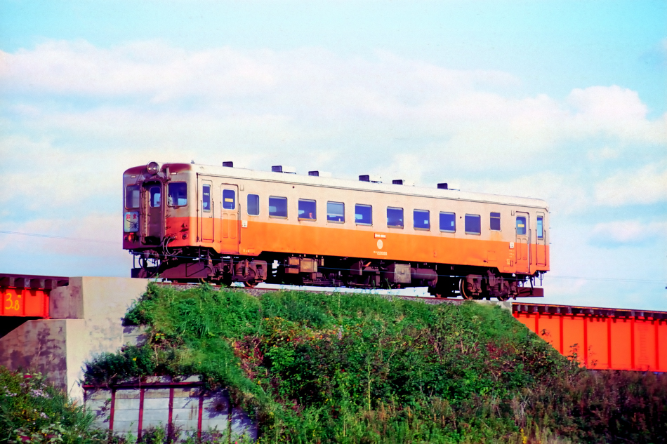| No.315‐10 1993年10月11日 キハ24022 津軽鉄道 芦野公園←金木 キハ24022はキハ20に類似していますが,客室窓が一段上昇窓であるところや屋根上のガーランドベンチレータが特徴。 |